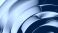 • 3D rendering. Abstract minimalist aesthetic background. Round metallic arcs. Blue and silver gradient refracting through a ribbed glass texture