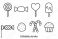 • Candy and sweets thin line icon collection. Editable stroke vector illustration set. Minimalist outline symbols for dessert, lollipop, cupcake, candy cane, and popsicle design.