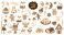 • Christmas sweets big collection, with seasonal winter desserts, muffins, cookies, gingerbread, rolls, vector design decorative elements isolated on white, seasonal design
