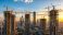 • Panoramic view of city construction site with cranes building new skyscrapers at sunset urban development real estate investment architecture growth industry