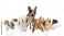 • Collage of mixed dog breeds running toward camera isolated on white background. Concept of pet food advertising, animal healthcare promotion, pet insurance visuals, and dynamic animal behavior.