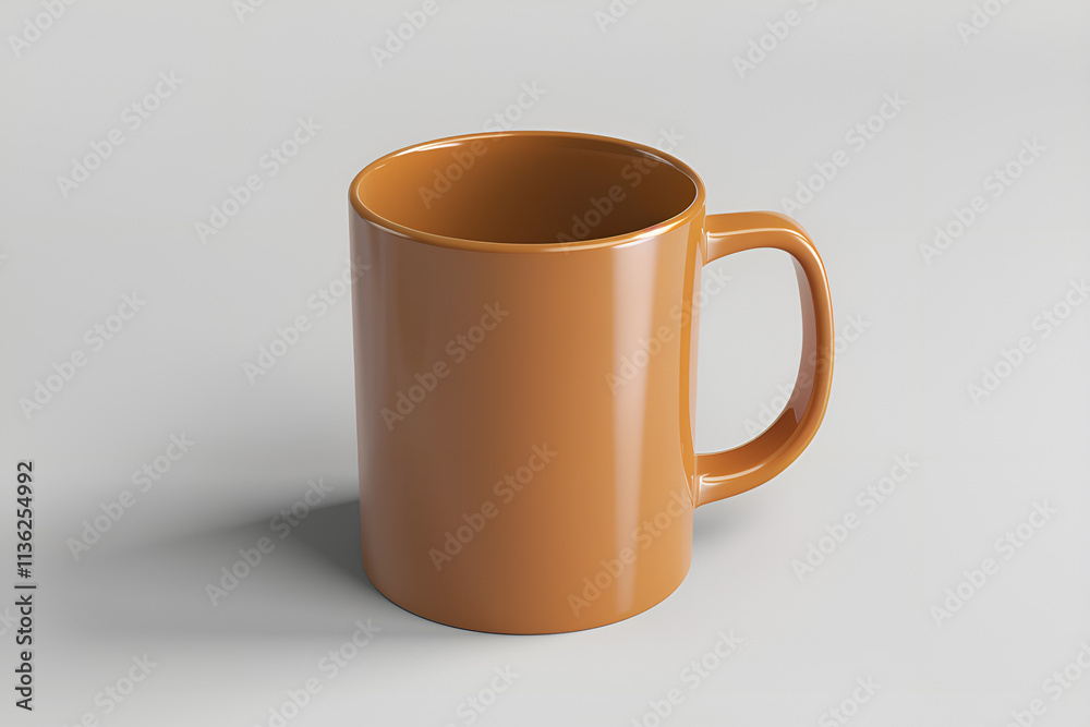 Kawa - Prosty, brązowy kubek ceramiczny na jasnym, neutralnym tle. #1136254992