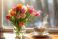 Kawa - Kartka na międzynarodowy dzień kobiet. Kolorowy bukiet tulipanów i kawa #1923774637