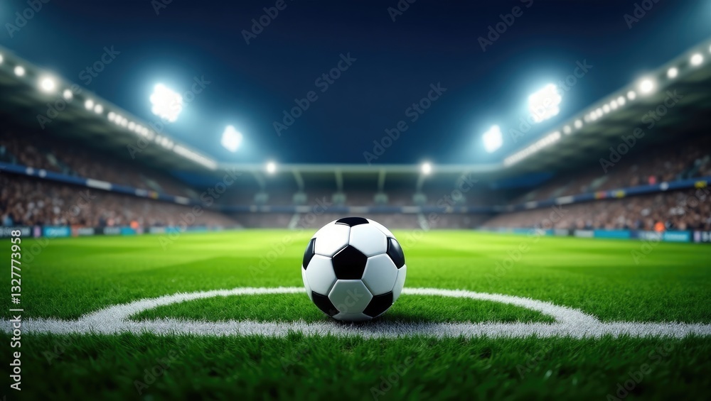 Sport - The soccer stadium featuring the ball positioned on the line. #1327773958