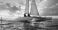 Sport - Two people sailing a catamaran on ocean waves at sunset, realistic style, with dramatic sky... #1471140416