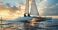 • Two people sailing a catamaran on ocean waves at sunset, realistic style, with dramatic sky background, concept of water sport and outdoor hobby. Ai generative