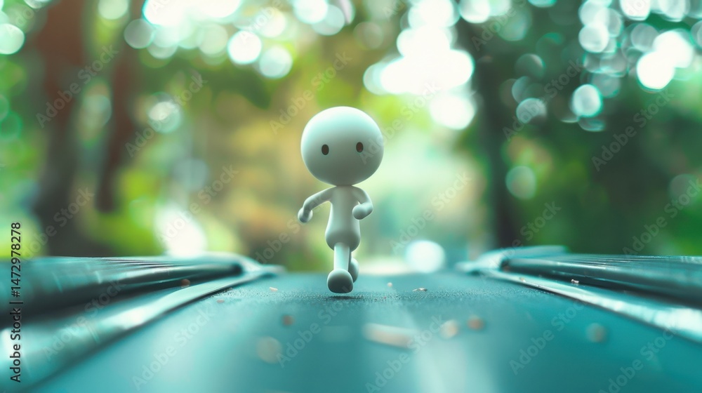 Sport - Stick Figure Exercising: A stick figure running on a treadmill, committed to staying fit and... #1472978278