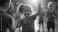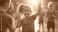 • A joyful young girl with curly hair celebrates during a playful game at sunset, surrounded by friends in athletic attire.