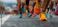 • Athletes running a marathon on a city street, wearing colorful running shoes, competing in a sports event