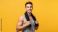Sport - Handsome sportsman over an isolated yellow background. Cheerful, optimistic, handsome, young... #1657933914