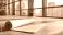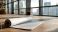 Sport - Unrolled white yoga mat on wooden floor in modern fitness center or at home with big windows and... #1659368310