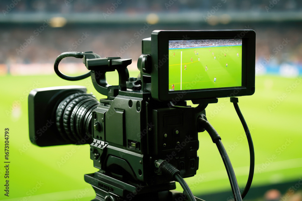 Sport - Professional Video Camera Capturing a Soccer Match in a Stadium professional camera sports... #1673104793