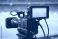 • Professional Video Camera Capturing a Soccer Match in a Stadium professional camera sports broadcasting