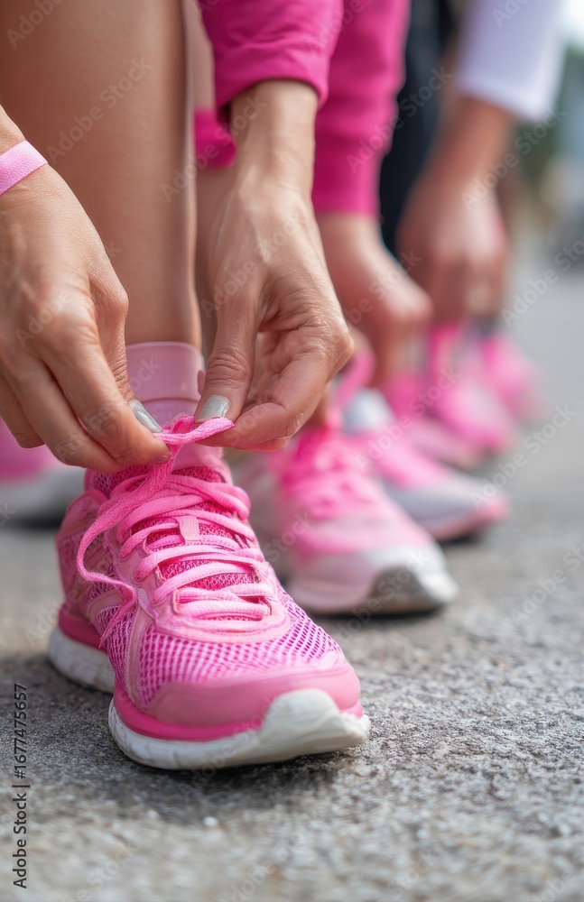 Sport - Runners tying pink running shoes for breast cancer awareness #1677475657