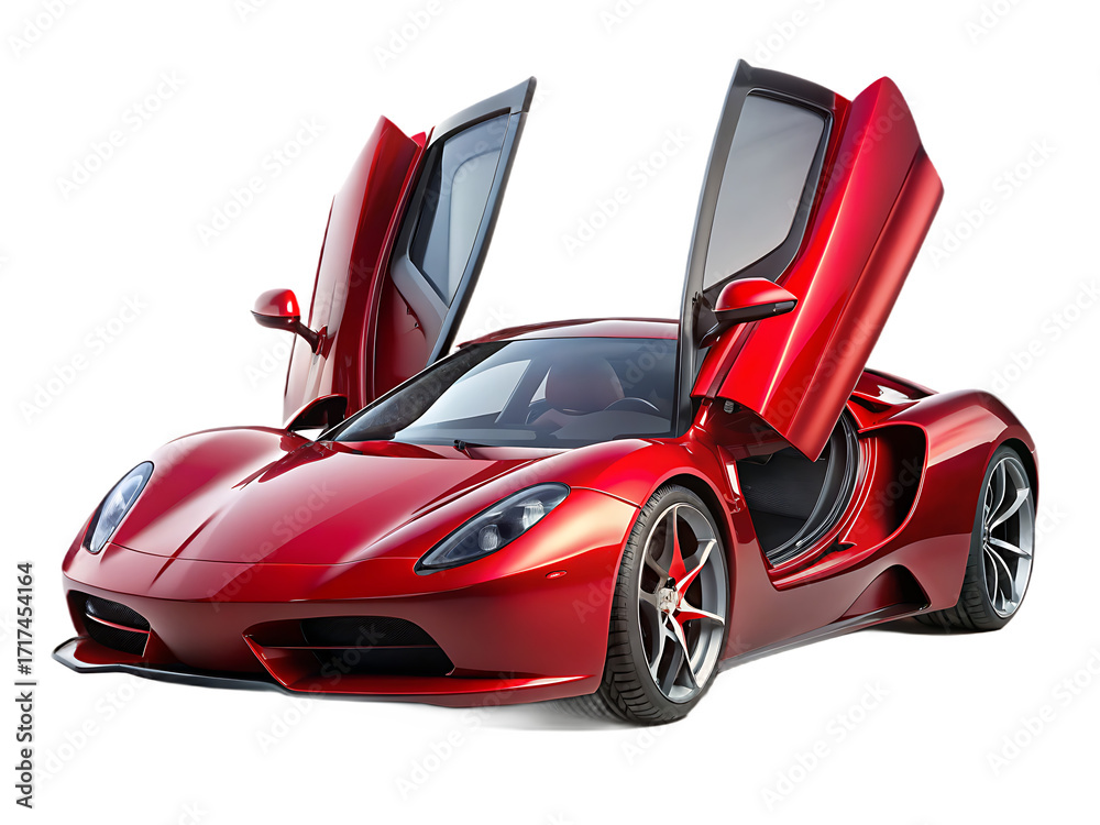 Sport - Shiny Red Sports Car with Doors Open on White Background supercar luxury car isolated on a... #1717454164