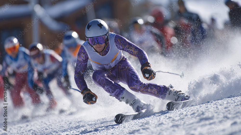 Sport - A dynamic sports photo of a skier on the track during an Olympic competition, with a blurred... #1719479903