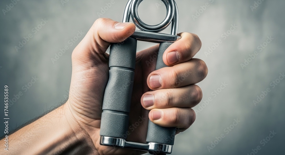 • Hand grips a gray and silver spring-loaded hand exerciser for strength training