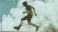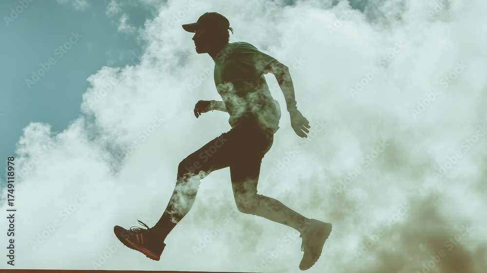 Sport - Silhouette vector illustration of running man and horse in the desert under a black sky,... #1749118978
