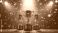 • Three golden trophies stand on a podium under a shower of confetti rain