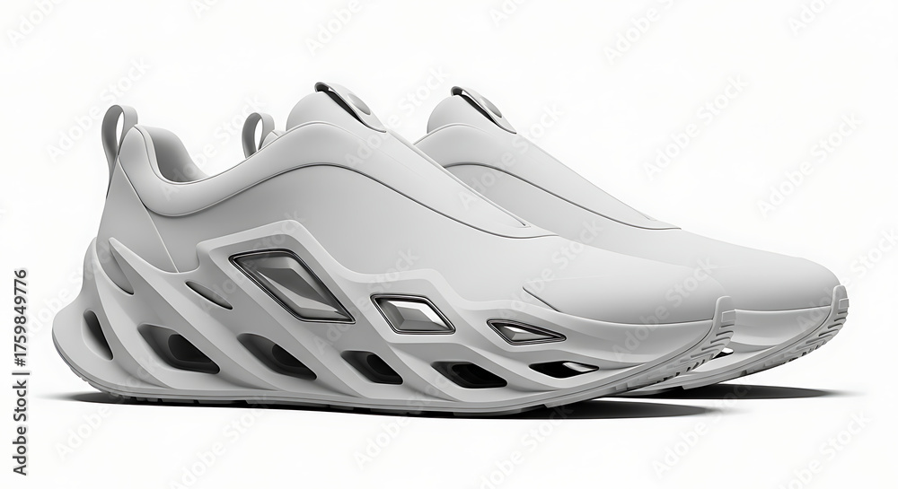 Sport - Minimalist sculpted sole sneakers mockup, clean futuristic style, isolated on transparent background #1759849776