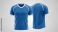 • Front and back view of a blank blue athletic V-neck t-shirt with white trim, ideal for sports apparel design mockups, team uniforms, and branding presentations