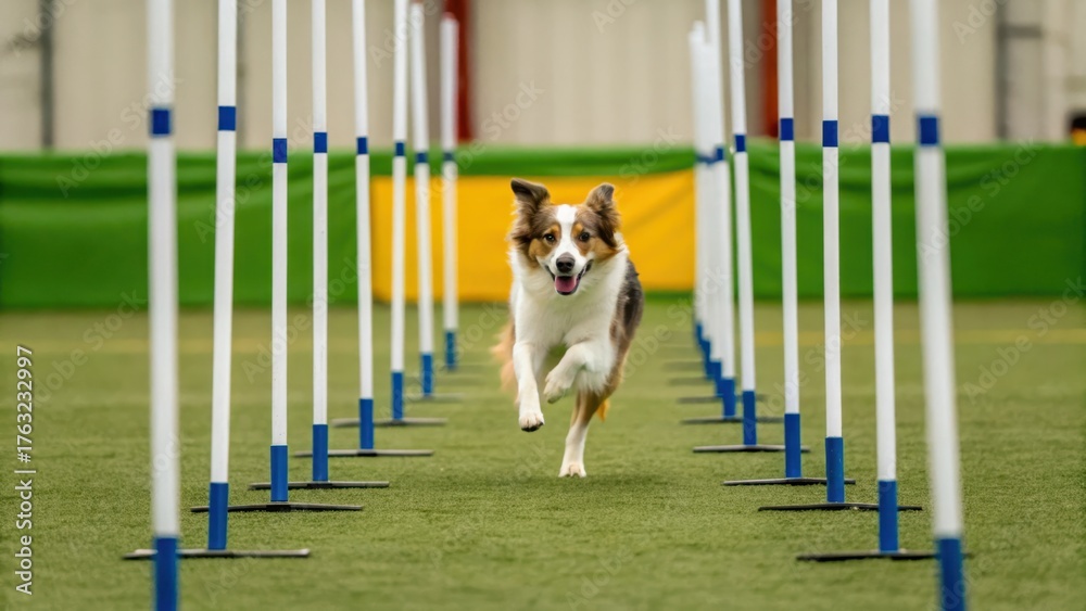 Sport - dog obedience demonstration A dog expertly navigates an agility course, showcasing speed and skill. #1763232997