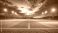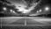 • Vibrant Football Field Under Dramatic Sunset Sky Illuminated by Bright Stadium Lights