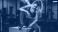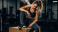 • Exhausted athletic woman with steam rising from her body resting after intense workout. Fit girl in sportswear taking a break from training at the dark gym. Fitness concept.