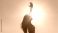 • Strong confident woman! Winning and life goals concept. Silhouette of a woman reaching towards the sun against a bright sky.