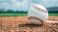 • Baseball Close-Up on Infield Dirt, Outdoor Sporting Event, Game Day, American Pastime, White Ball, Stitched Seam