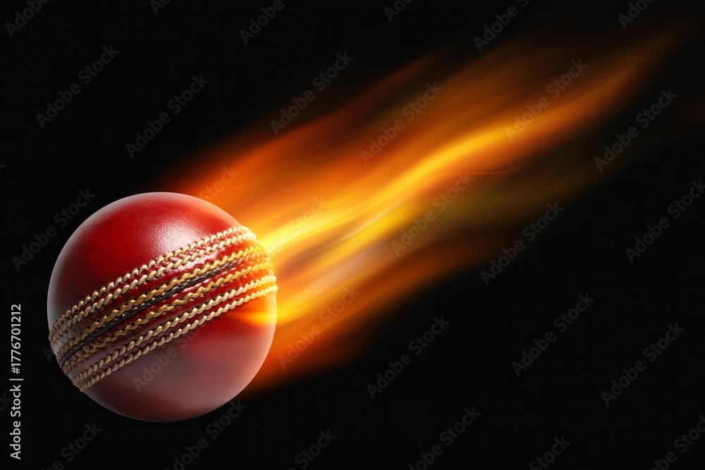 Sport - Fiery cricket ball hurtling through the air sports equipment action shot #1776701212