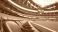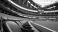 • Seating arrangement in a modern sports stadium before the game with an open roof and bright green field