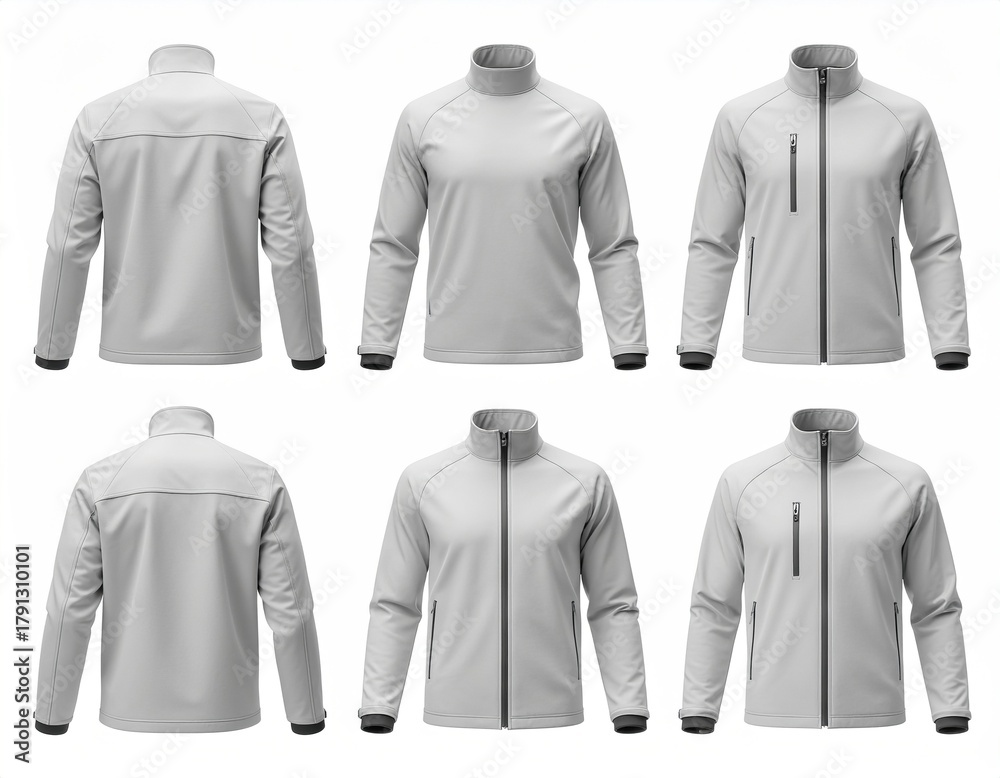 Sport - Light grey athletic jacket template with zipper details in multiple views on white background #1791310101