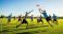• Group of young males playing ultimate frisbee on a sunny day outdoors
