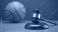 • Basketball and gavel symbolise legal issues in sports or court decisions regarding athletic events