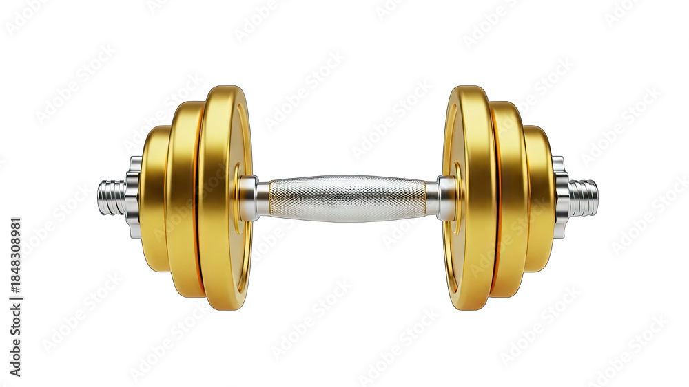 Sport - Golden Dumbbell Isolated on White Background #1848308981