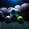• A dynamic composition featuring diverse sports balls arranged on textured green turf surface.
