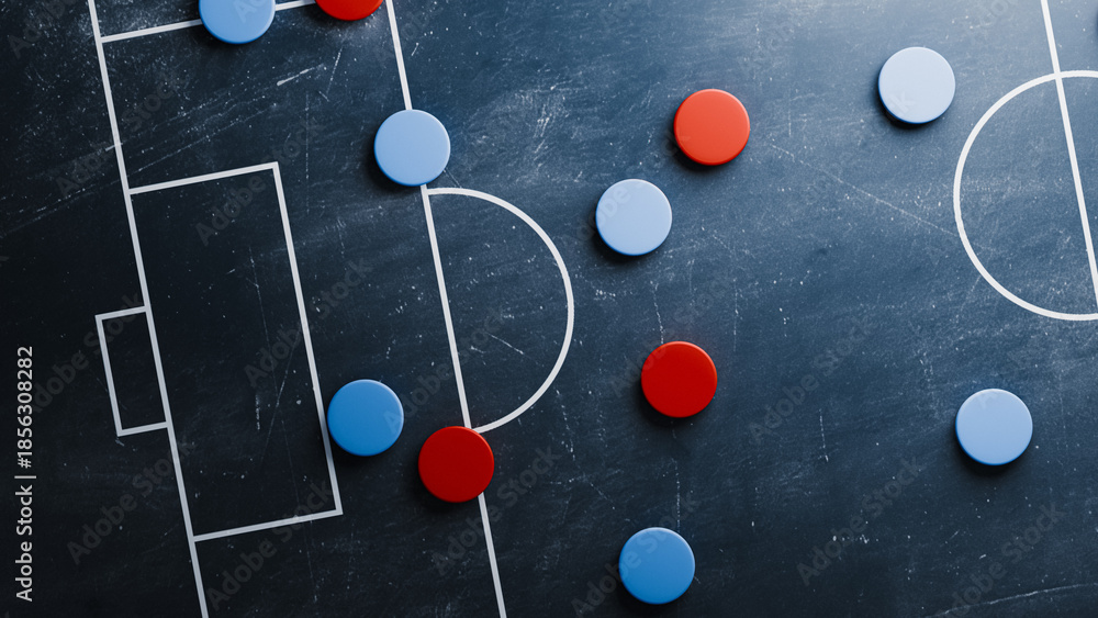 • Top View Football(Soccer) Tactics Board Strategy Concept Copy space. 3d rendering