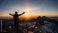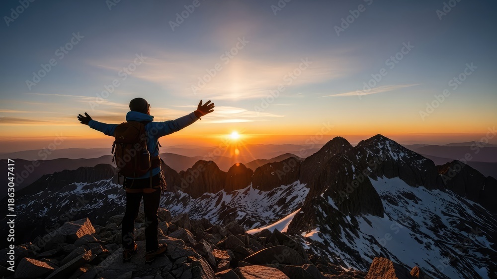Sport - silhouette of a man standing on a mountain top #1863047417