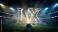 • Dramatic stadium view of super bowl lx with shiny roman numerals and a football on the field