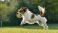 • Playful Jack Russell Terrier Catching Yellow Tennis Ball in Sunny Park