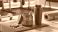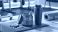 • Fitness supplements and equipment laid out on a slate board in a gym setting