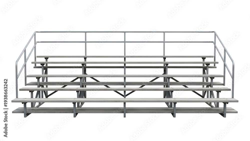 • Modern steel bleacher seating isolated on transparent background