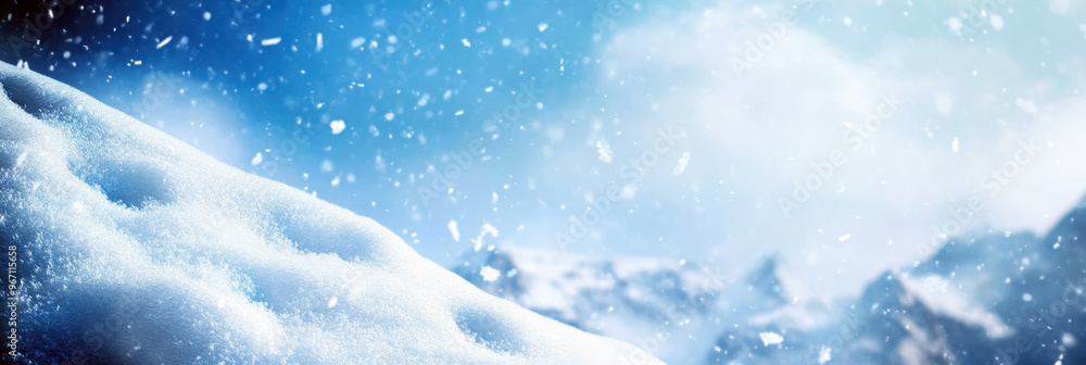 Sport - Snowdrifts and snowfall. World Snow Day. Horizontal banner. Free space for text. Winter landscape... #967115658