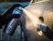 • Odmrażanie zamarzniętego zamka w samochodzie przy pomocy aerozolu. Dłoń spryskująca zamek aerozolem