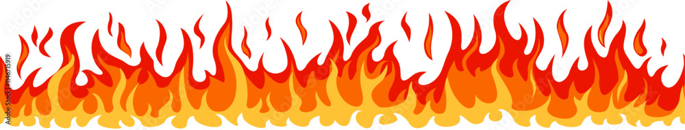 Bright cartoon flames creating a seamless horizontal band of fire, radiating vibrant shades of orange, red, and yellow, perfect for backgrounds and decorative design elements od 0,00 zł Dopasuj i kup