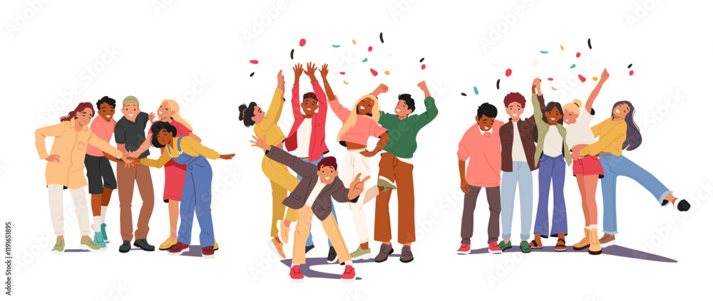 Dla Dzieci - Group of happy teenagers celebrating holiday, partying or clubbing together cartoon scene set #1191651895