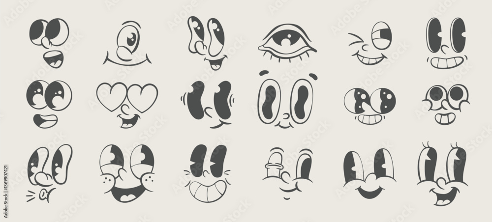 • Retro mascot parts set, vintage cartoon eyes, groovy character design kit