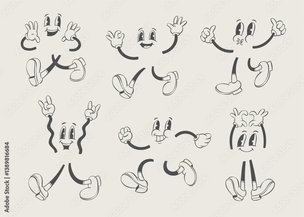 Dla Dzieci - Retro groovy shopping mascot, vintage cartoon shopping cart and bags characters, rubber hose style #1389816684