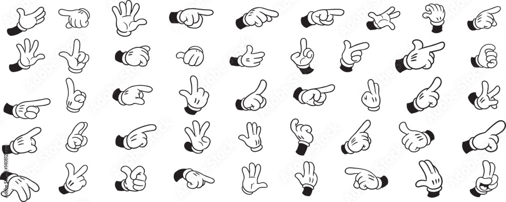 Collection of forty seven illustrations of retro four-fingered cartoon hands. Dopasuj i kup Naklejka